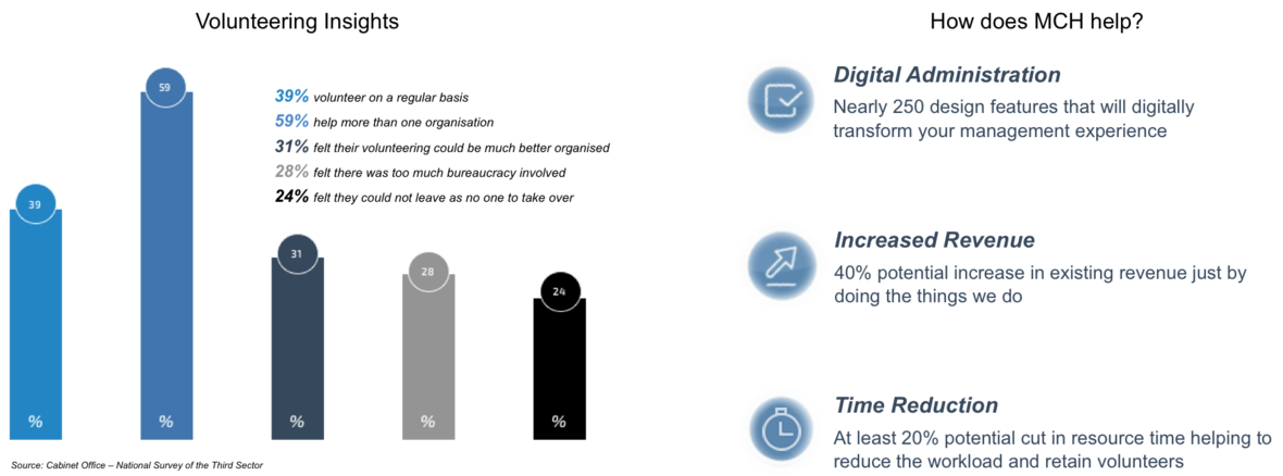 MCH generates real financial value, saves significant amounts of time and resource and helps safeguard the future of any volunteer organisation, leaving you to focus on the things that matter.